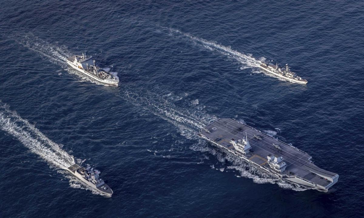 英国这次派遣的航母打击群编队,包括有英国皇家海军历史上“最强大”的水面舰艇“伊丽莎白女王”号,英军45型驱逐舰“钻石”号和“保卫者”号,23型护卫舰“肯特”号和“里士满”号,两艘支援补给舰,一艘潜艇,以及美国海军“沙利文”号导弹驱逐舰和荷兰海军“艾弗森”号护卫舰,共9艘舰艇、32架战机和3700名人员组成。