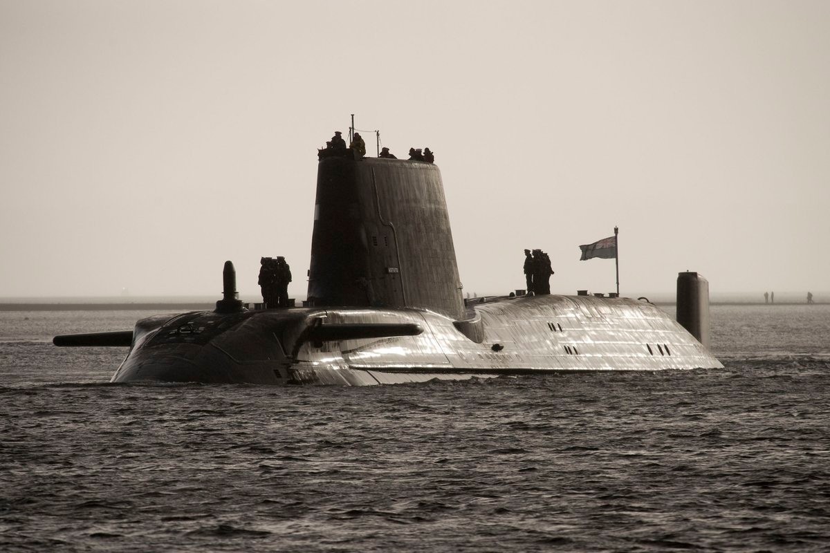 此次编队中的是英国皇家海军“机敏”级攻击核潜艇。全长97米,艇宽11米,满载排水量7400-7800吨,最高航速可达30节,海上自持力为90天。
