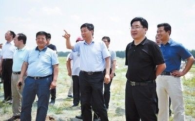 县委书记王兆军、县长申保卫、县委政法委书记梅前进一行查看水域工程进度