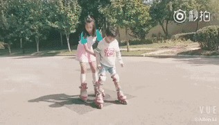 姐弟俩一起玩滑轮,田亮还说有了姐姐这个陪练,小亮仔再也不粘着自己了。