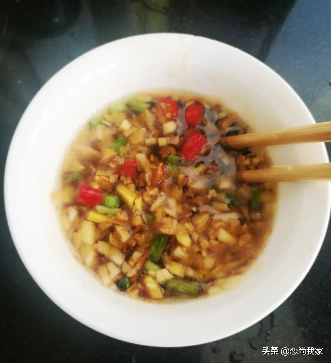 5、锅中放油适量,放入大蒜和姜末炒黄。倒入小碗中,放盐,生抽,蚝油、白糖,胡椒粉,香油等拌匀。