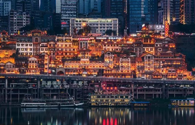 晚上八点左右,你就可以去洪崖洞看夜景啦,每天晚上八点开灯,十点关灯。只有晚上你才能明白它为什么可以美得这么震撼,真的是现实版的“千与千寻”。