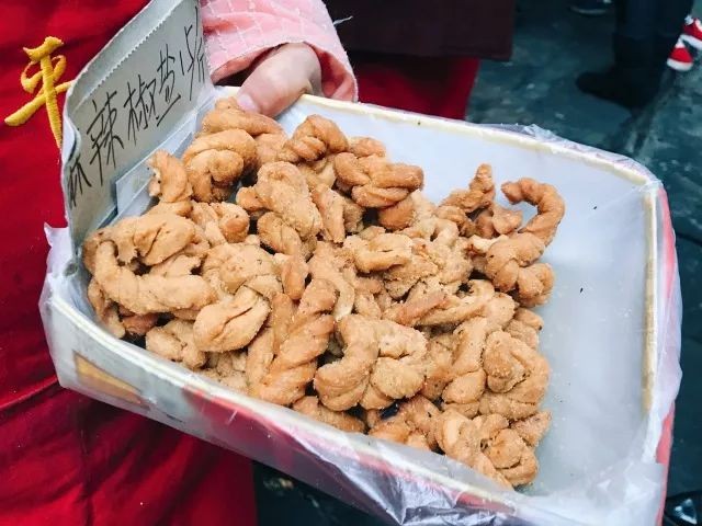 到了磁器口怎么能不吃麻花呢,一条街几乎都有试吃的,如果不想买麻花带回家的话,你就可以无限试吃,从街头到巷尾,光试吃就吃饱了。