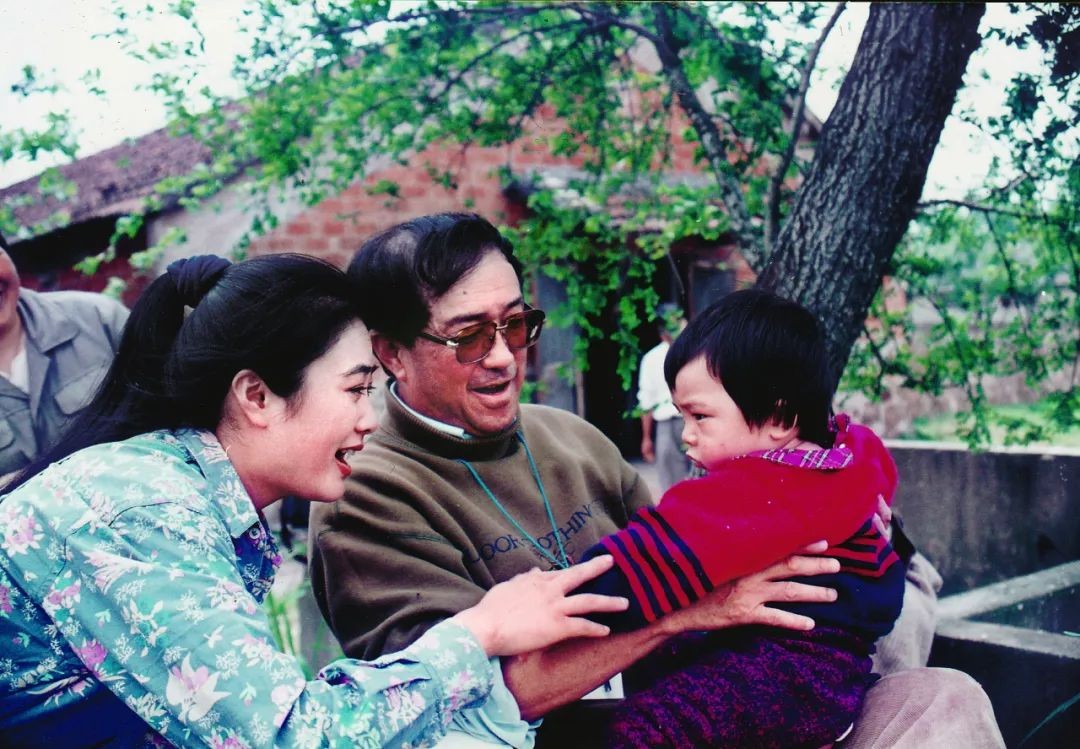 《女儿谷》拍摄现场,编剧周建萍与谢晋导演给小演员爱爱排戏