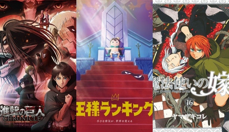 (由左至右)进击的巨人、国王排名、魔法使的新娘