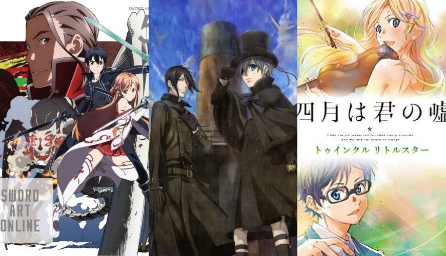 (由左至右)刀剑神域、黑执事、四月是你的谎言