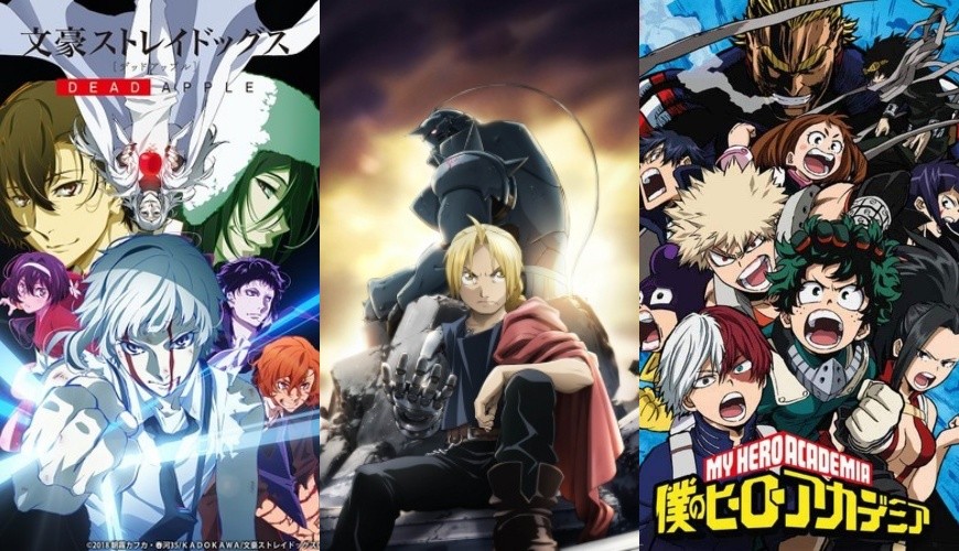 (由左至右)文豪Stray Dogs、钢之链金术师、我的英雄学院