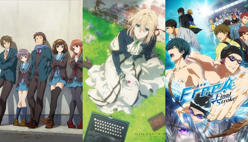 (由左至右)凉宫春日的忧郁、紫罗兰永恒花园、Free!