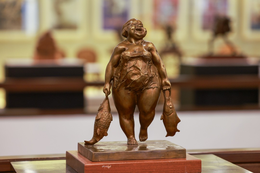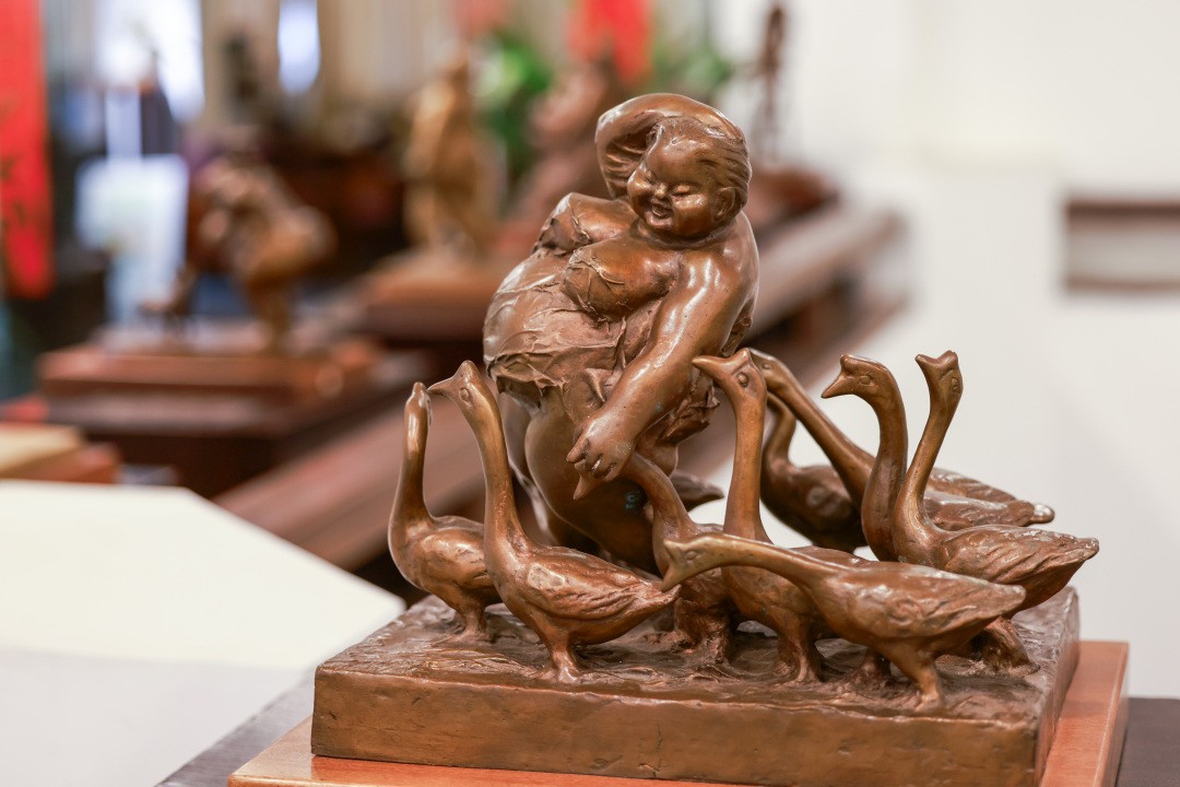 许鸿飞介绍,本次展出的雕塑有运动主题、母爱主题,今年龙年的最新作品《龙凤呈祥》,还有《吻》,“我的每一场巡展都会补充新的作品,但60站都保留了《吻》——大家一看就知道是我的作品。”
