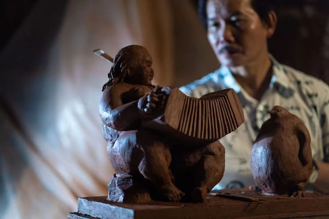许鸿飞正在进行泥稿创作