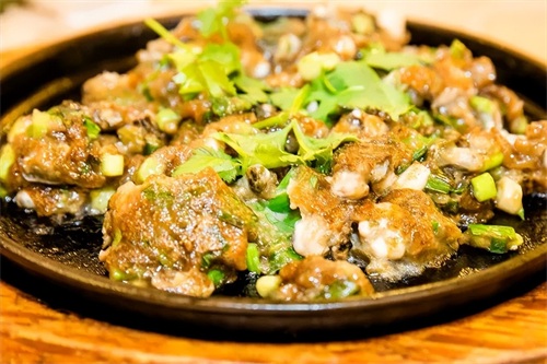海蛎煎:做法是把海蛎洗净泥沙,和青蒜苗调味汁拌在一起煎至焦黄,最后打入散打的鸡蛋。海蛎煎的口感香脆,内馅香滑,十分美味。