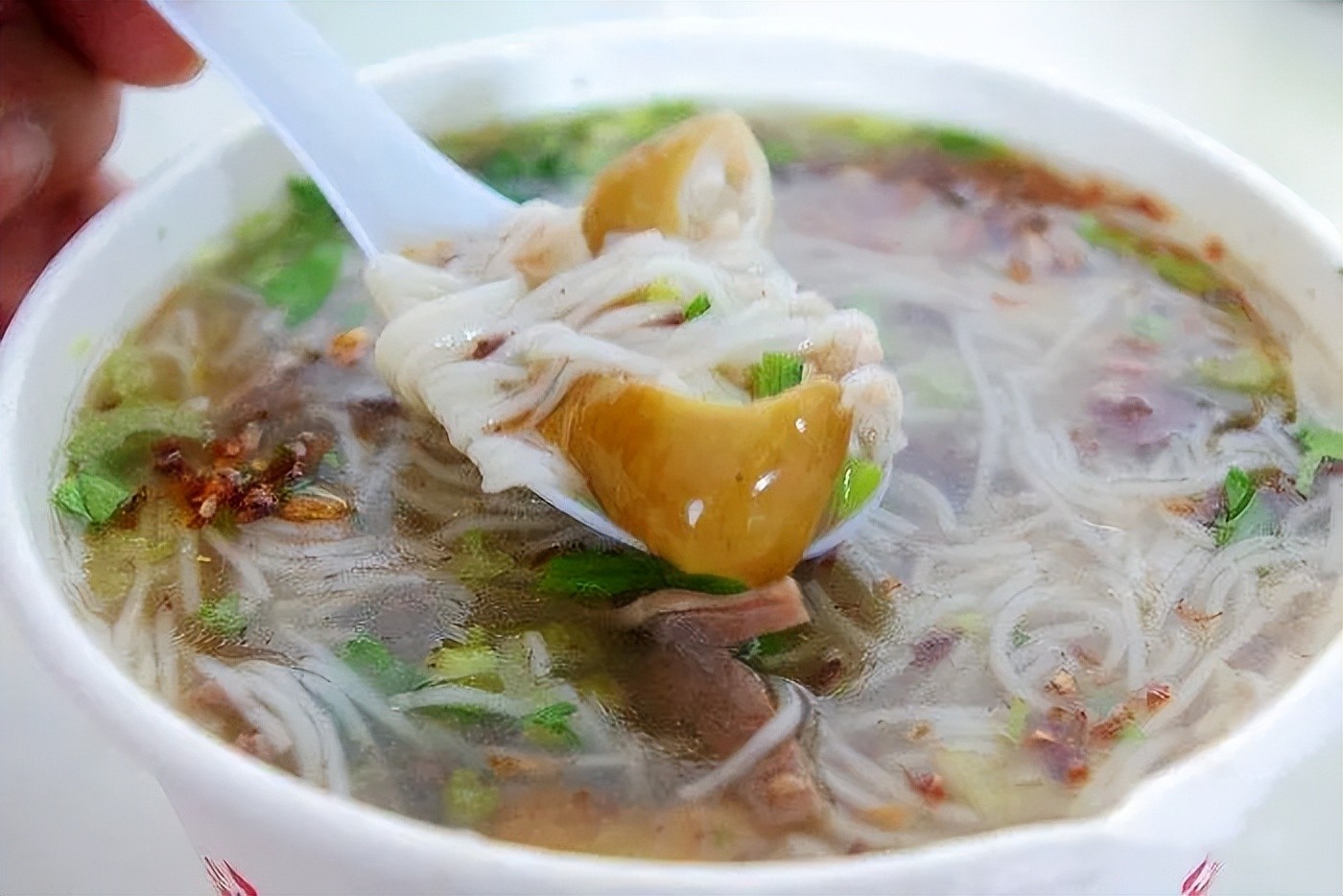 厦门面线糊:厦门的一种特色美食,以细条面线和地瓜粉相融合,以猪骨汤为调和汤底,将原本清汤面线做成糊状即成。早晨可以搭配油条、马蹄酥一同品尝,甜咸的口感在口中缭绕。