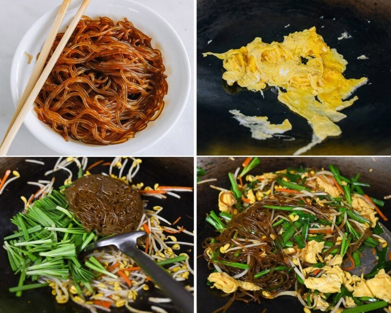 它非常的质朴又丰盛,有很多食材结合在一起,例如鸡蛋、韭菜、胡萝卜、豆芽、肉丝、红薯粉丝等,味道咸鲜平衡,堪称完美!