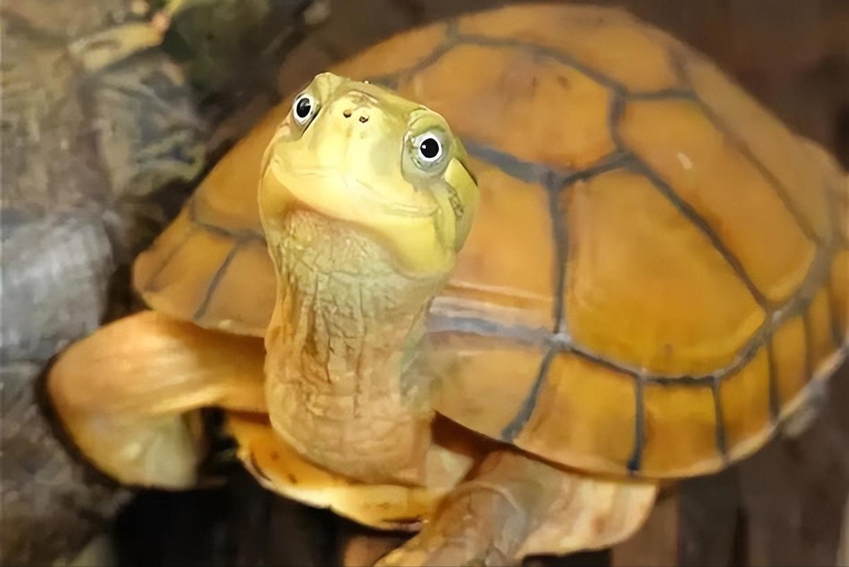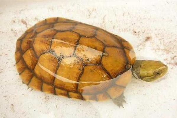 其龟体扁椭圆形,龟头呈蛇头状,相对较小,头背光滑无鳞,呈灰黄或黄橄榄色,头腹部及喉部为醒目的黄色。