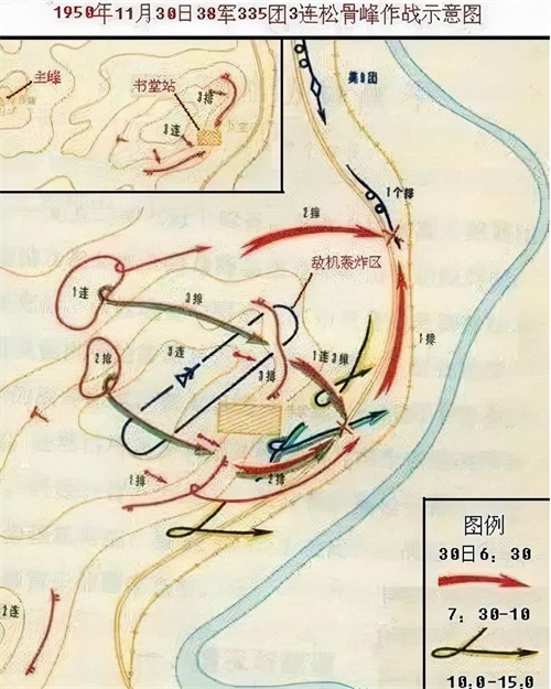 松骨峰是朝鲜北部的一座不知名山包,位于平壤北部大同江边的价川,它名虽有“松”,但却是一座乱石冈。1950年11月底的二次战役时,38军112师奉命在这里独挡美军南下,335团1营3连奉命奔袭龙源里以北1千米处的松骨峰,这是南下平壤公路的咽喉处。