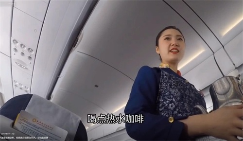 此时的飞机正处于晃动状态,并且舱内光线昏暗。