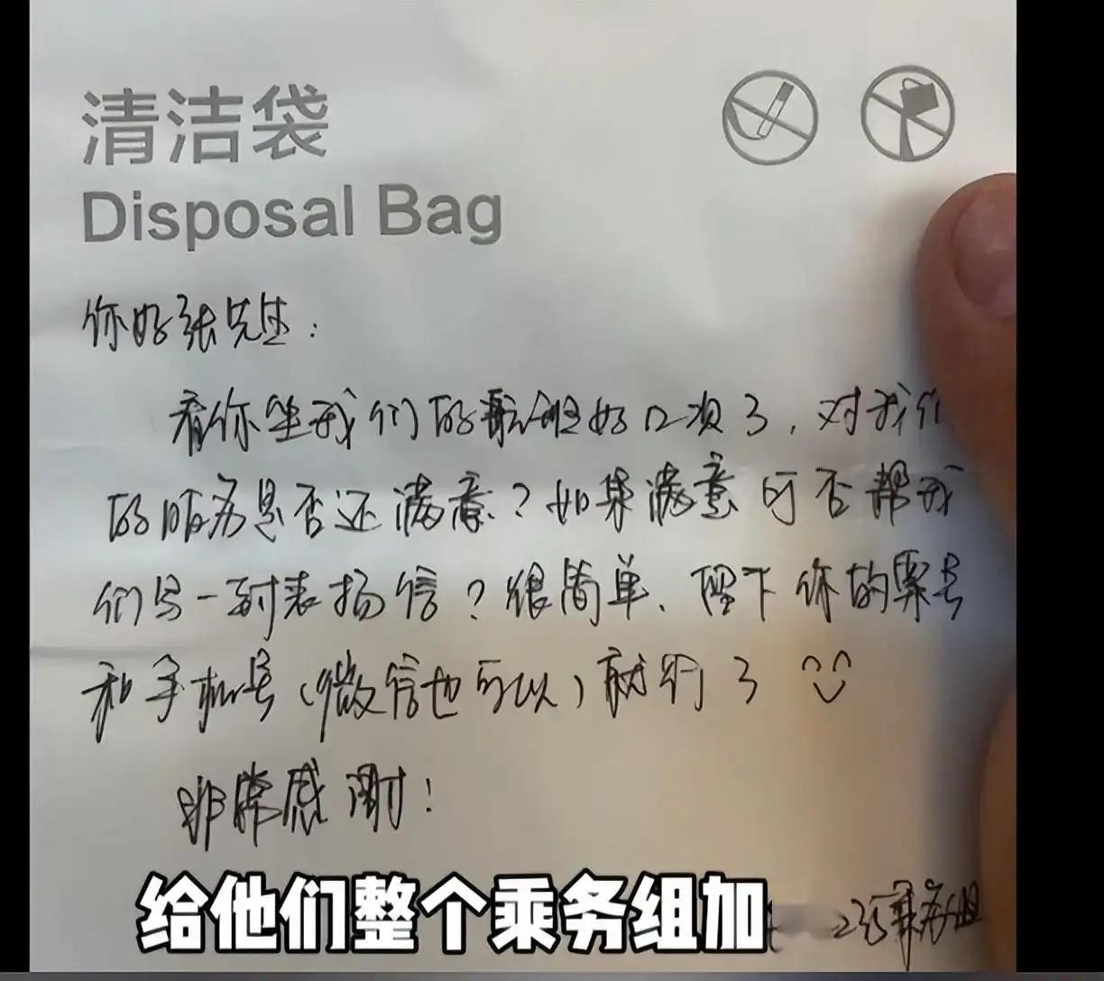于是下飞机后,她又特意绕到张健豪所在位置,并且小心翼翼地塞给了他一张纸条。