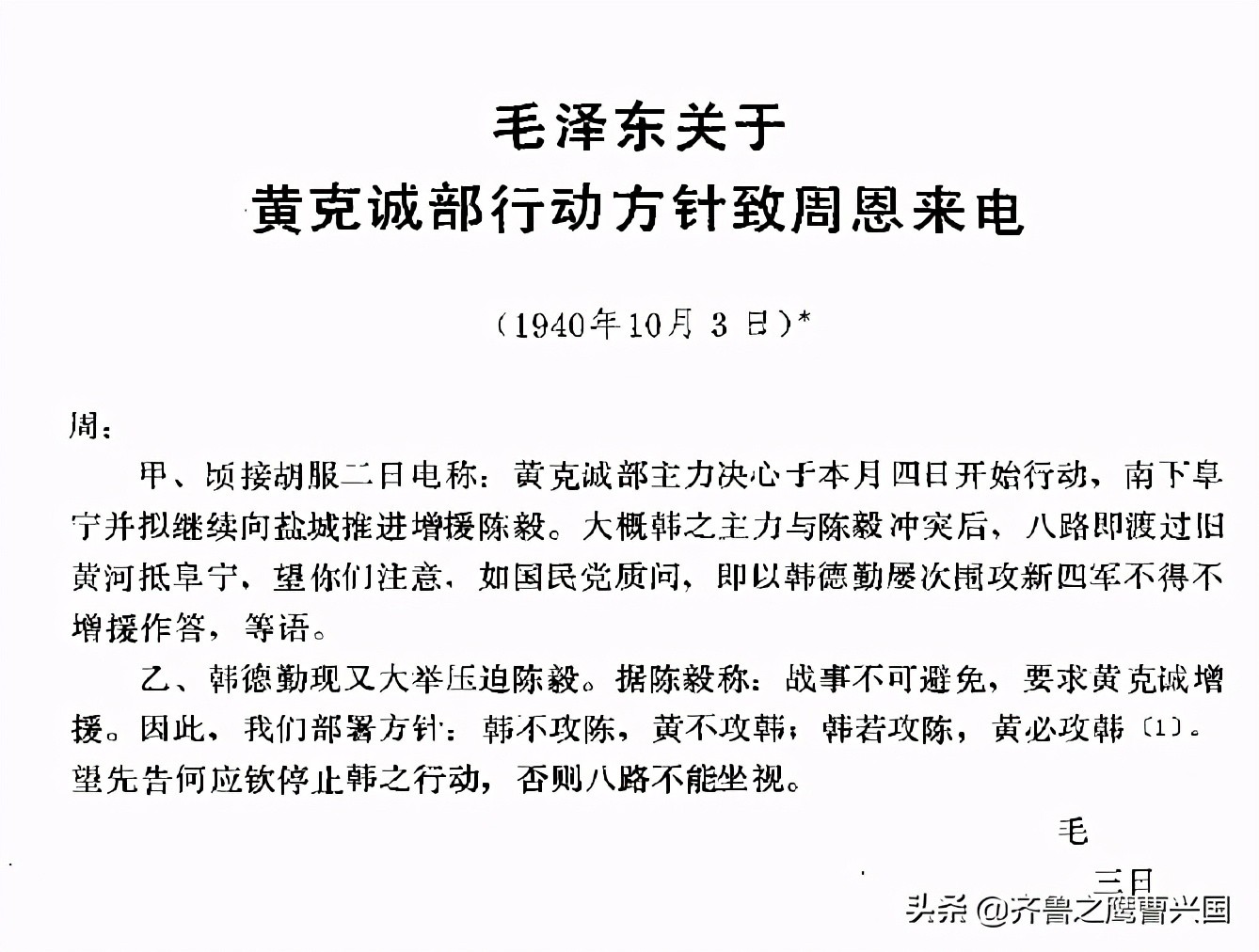 1940年10月3日 党中央毛主席根据新四军陈毅部所面临形势,提出了“韩不攻陈、黄不攻韩、韩若攻陈、黄必攻韩”策略。韩德勤惧怕八路军和新四军会师,决心采取“先南后北”的方针,打算先歼苏北新四军,然后会师对付南下八路军。因此其亲自指挥26个团共3万与兵力南下,妄图歼灭苏北新四军与黄桥地区,形成了黄桥决战态势。