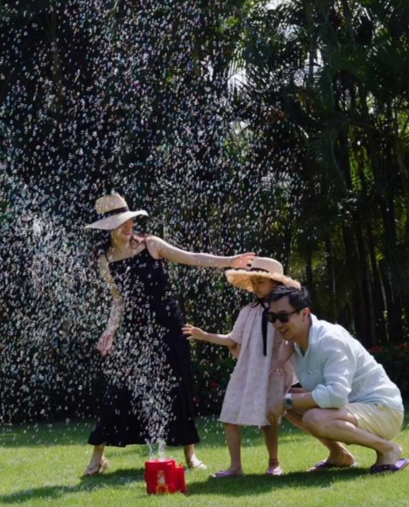 小他15岁的娇妻,为他生了一个可爱的女儿,一家三口幸福美满。