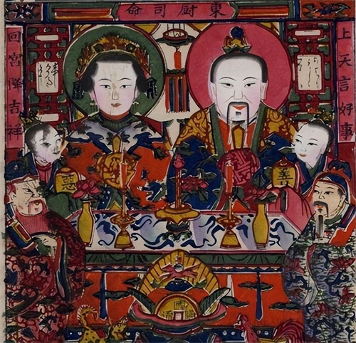 传说他能够监察家人的善恶,并在年末向玉皇大帝报告,保护家庭免受灾害,并且河南的灶神画像多在朱仙镇木版印制,画中灶君夫妇坐在天宫中,周围有八仙、金童玉女、鸡犬六畜,称为“老灶爷牌位”。