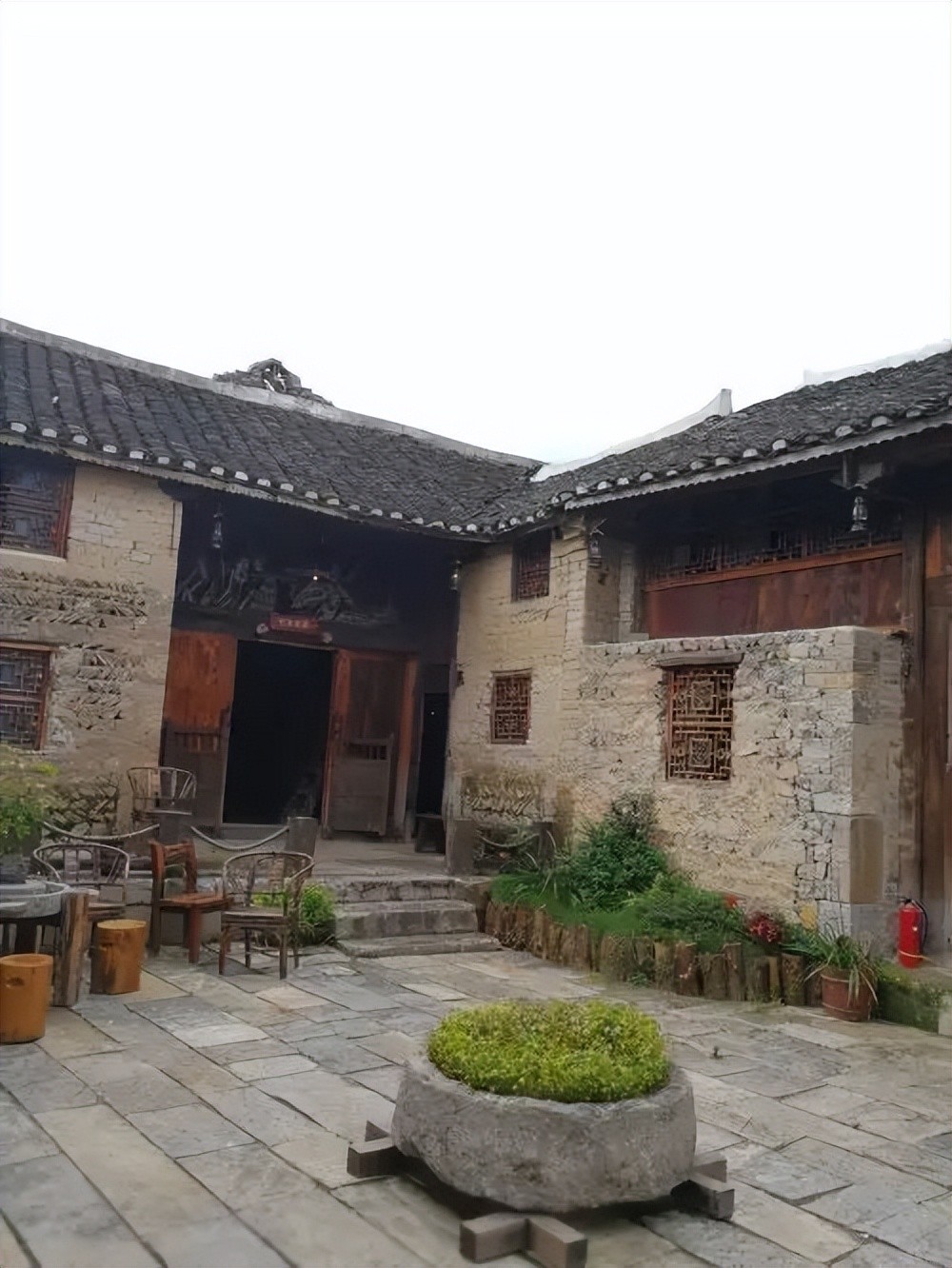 在天下第一堂屋周围,便是古民居群,我们参观了染布之家、武林郎、文林郎之家等,这些民居有石彻的,也有土泥筑的,但都显得高大、整齐、简洁,一般是上楼下圈,上面住人,下面养牲畜。