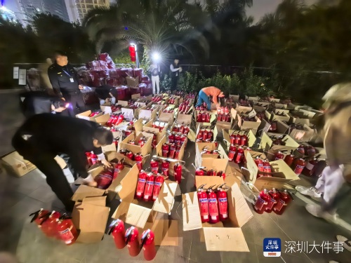 李先生称,业主发现送抵小区的灭火器及灭火器箱可能存在质量问题后,于1月8日分别向南山区市场监管部门、南山消防大队以及公安机关报案,并向第三方检测机构送检灭火器样本。1月10日,市场监管部门再次来到小区取走2箱灭火器样本送检,消防大队也在当天回复业主表示现场检查到的灭火器在有效期内,有资格证书、外观完好、压力正常。
