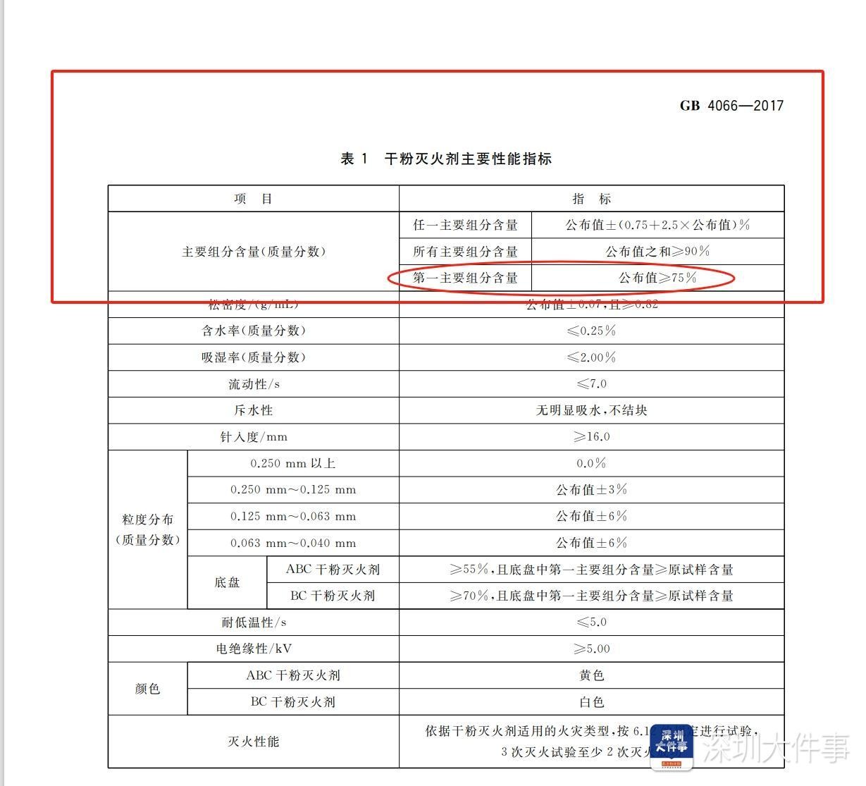 强制性国家标准对于干粉灭火器组分含量的要求。