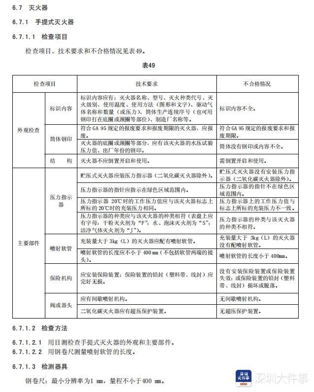 据悉,消防机构在使用领域开展消防产品质量检查时按照《消防监督检查规定》《建设工程消防监督管理规定》执行,并根据消防产品现场检查判定规则,实施现场检查判定;而质量技术监督部门、工商行政管理部门对生产领域、流通领域的消防产品质量进行监督检查时对照强制性国家标准。消防机构在使用领域对手提式灭火器进行现场检查判定的项目包括标识内容、筒体钢印、结构、压力指示器、喷射软管、保险机构、阀或器头等内容。而强制性国家标准中要求的干粉灭火器组成成分含量需要按对应的国家标准、行业标准或试验委托方提供的经相关方认可的方法进行检验。
