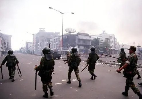 1998年5月印尼雅加达等地发生严重骚乱,数个城市成为“死亡之城”。数千暴徒焚烧办公大楼、商店、住宅、汽车,有组织地针对华裔进行烧、杀、奸、掠。导致1200多人在骚乱中丧生,5000多间华人商店和住宅惨遭烧毁,更令人发指的是五月暴乱中,印尼各地总共发生5000多起暴徒强奸或轮奸华裔妇女的惨案,令人痛心无比,这便是震惊世界的“黑色五月暴动”。此次严重骚乱,导致大量平民伤亡,印尼国家经济和社会运转遭受巨大损失,骚乱进而演化成为一场变革运动,在此国内外双重压力下,执政长达32年的苏哈托总统宣布辞职。
