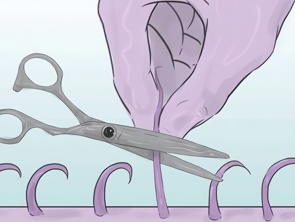 4.固定皮肤:为了避免切伤皮肤,拉伸皮肤并固定它,这样就可以更容易地完成修剪过程。