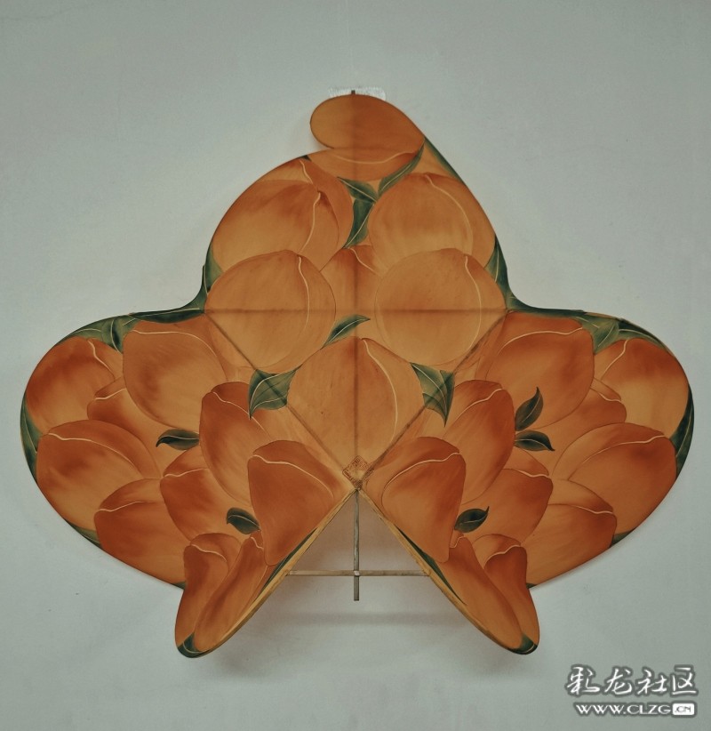 “桃子寿星”歪桃造型云南硬翅风筝,是云南传统风筝中最具代表性的样式。该风筝采用精选竹材扎制骨架,整体为正三角结构,画面主要以桃子图案装饰翅膀部分,中心部分则以寿星图案为主,寿星的额头正好与“歪桃”的头部契合,祝福大家既能福气滔(桃)滔(桃),又能健康长寿。