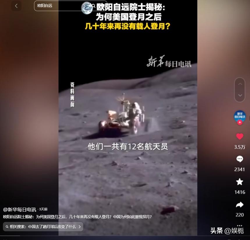 距离上次登月已经52年,欧阳自远院士说出真相,为何美国不再登月