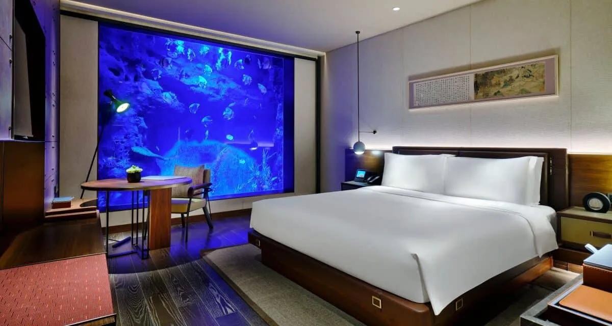 世茂仙境洲际豪华度假村建于2018年,位于一个废弃的采石场内。 这个仙境距离上海 30 英里,享有周围自然风光的壮丽景色。 这些独特的住宿为您提供两层水下楼层和几间水下景观尊贵套房,为您带来难忘的体验。