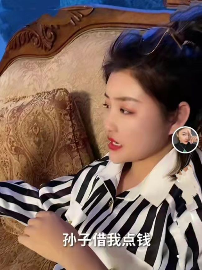 在这段名为《孙子都有钱儿》的视频中,娇娇身处豪宅之中,对着手机自言自语道:“孙子借我点钱,我出去吃顿饭,别问我为什么,管你借钱还管您(声音读“您”,字幕错字)叫孙子,当你还钱的时候,您就知道了!”