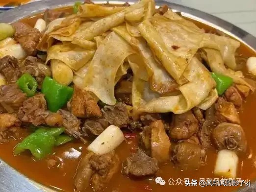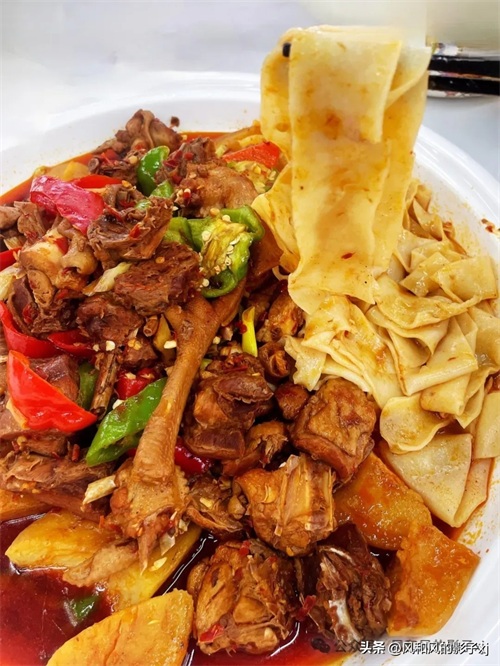 鸡肉鲜嫩、土豆软糯,搭配皮带面