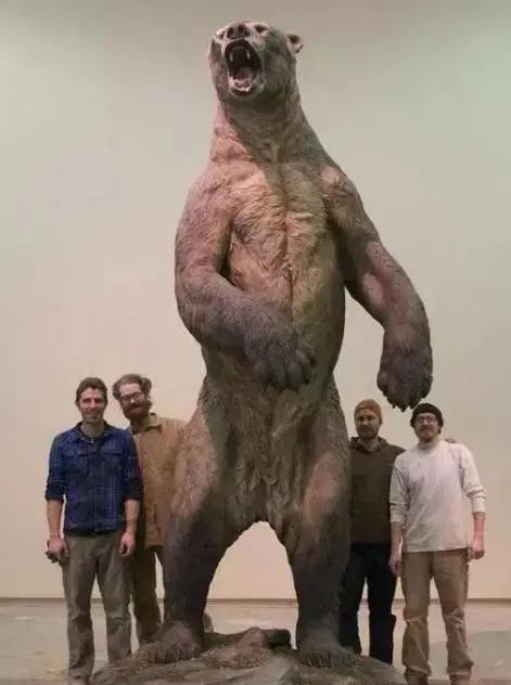 在北美地区,有这样一种熊,它站起来的时候可以达到四米的高度,吃的食物是野牛,所以这种短面熊也被称为吃牛熊。