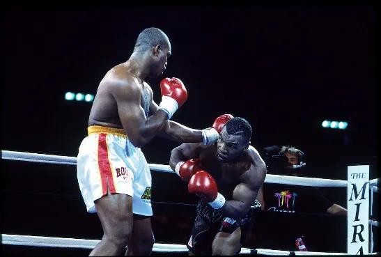 1988年1月22日,这对新老拳王在拳台上碰面了,比赛一开始,泰森直扑霍姆斯恨不得生吞对手,劈头盖脸就是一通猛攻,霍姆斯也绝非等闲之辈,他利用自己身高臂长的优点,和丰富的比赛经验在拳台上和泰森周旋。