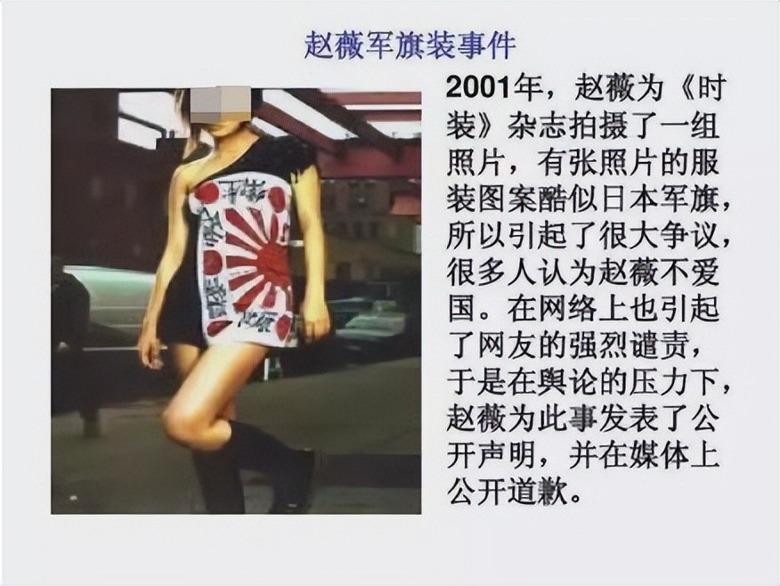 这期杂志一经发行,立刻遭到抵制,舆论将责任指向了赵薇——一个当红巨星,怎么可能不知道自己在穿什么,她肯定是故意的!