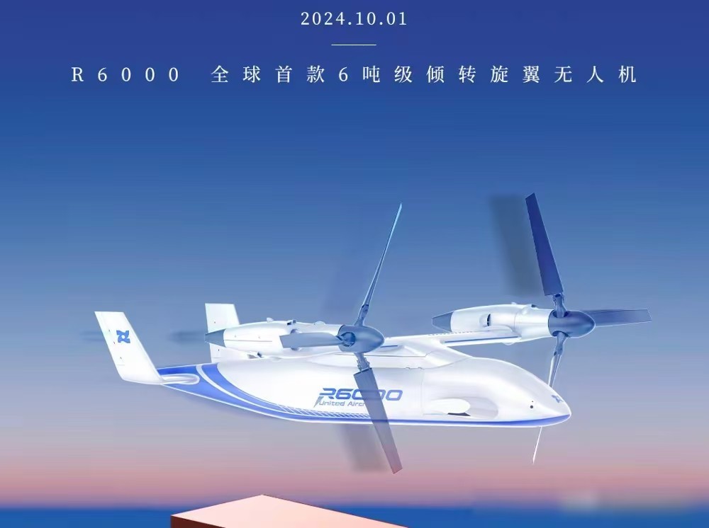 作为全球首款6吨级倾转旋翼无人机,镧影R6000于2024年10月11日,在芜湖联合飞机生产车间正式下线。