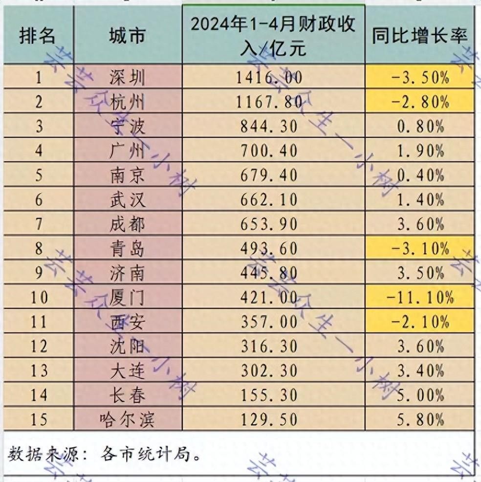 近日,我国各省市陆续公布了2024年1-4月份的财政收入数据,15个副省级市的经济实力排名正式出炉,南京位居第5名,济南有望反超青岛,哈尔滨常年垫底,接下来我们不妨来具体了解一下吧。