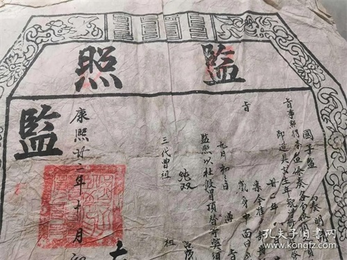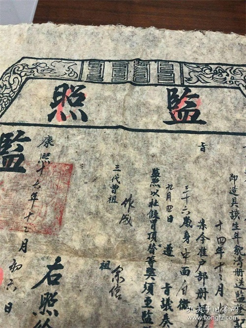 国子监学生证叫“监照”