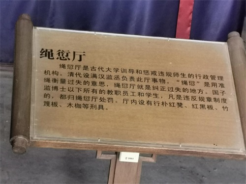 监管教学的绳愆厅对不尊师长,懒惰浮躁,狂言妄语的学生给予相应的惩罚,并可动用刑具,是当年太学生们望而生畏的地方。