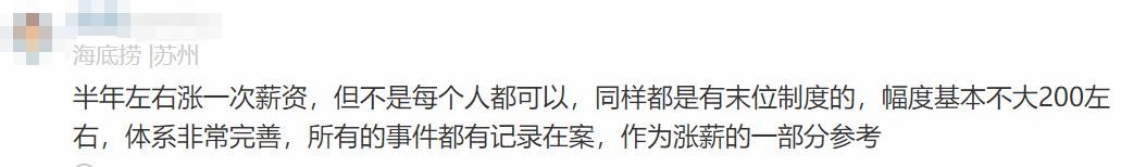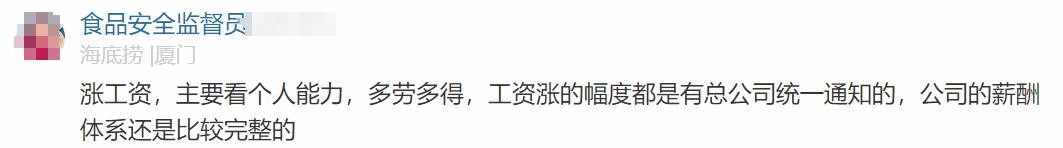 海底捞员工原话:涨工资,主要看个人能力,多劳多得,工资涨的幅度都是有总公司统一通知的,公司的薪酬体系还是比较完整的