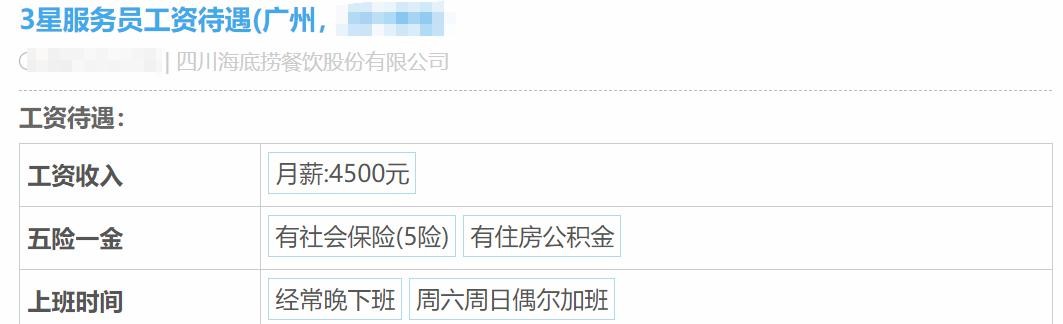 第一位自曝薪酬的,是海底捞的服务员,他的月薪是6K,有五险一金,工作日经常晚下班,周末要加班