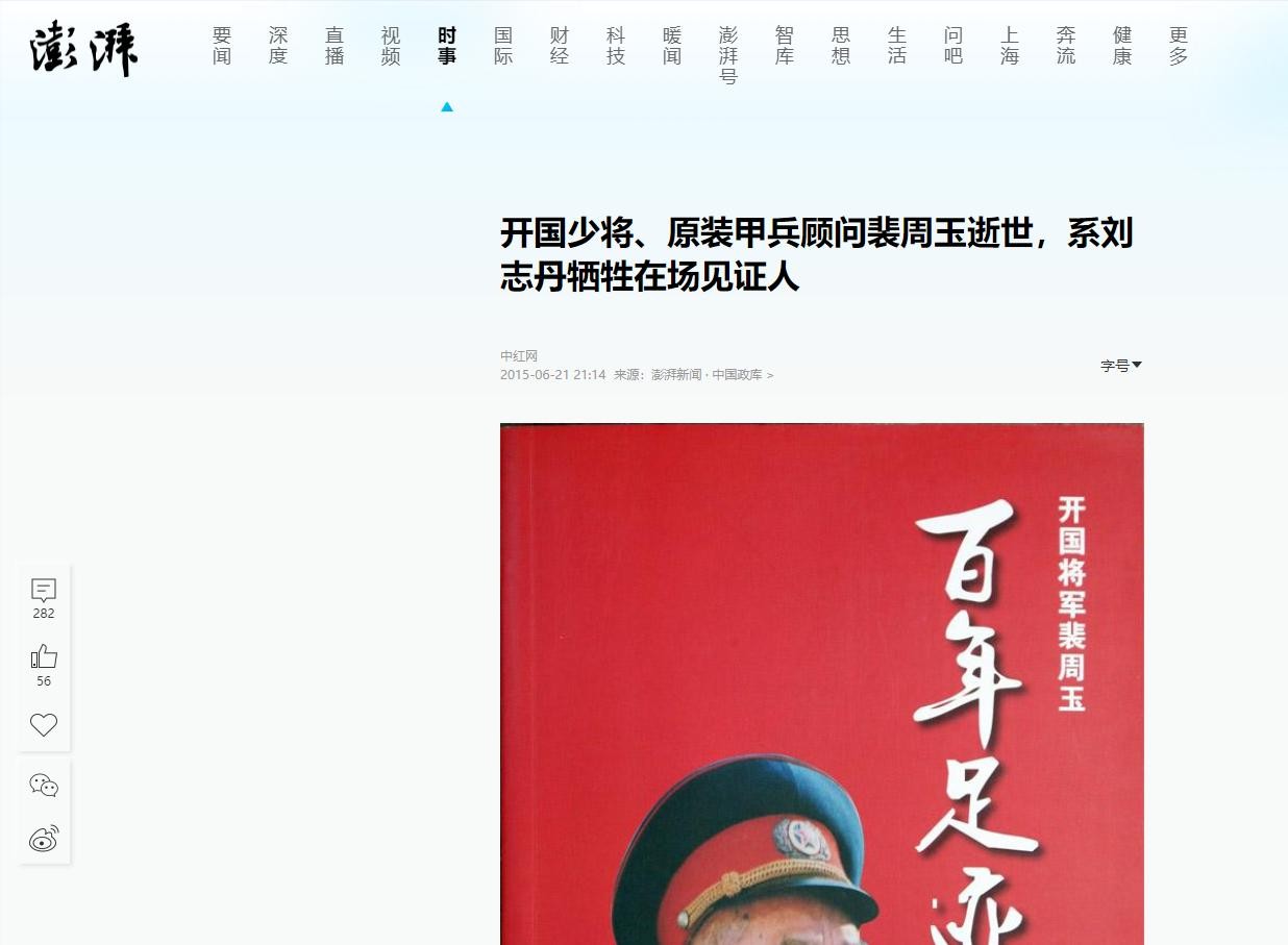 开国少将、原装甲兵顾问裴周玉逝世,系刘志丹牺牲在场见证人_中国政库_澎湃新闻-The Paper