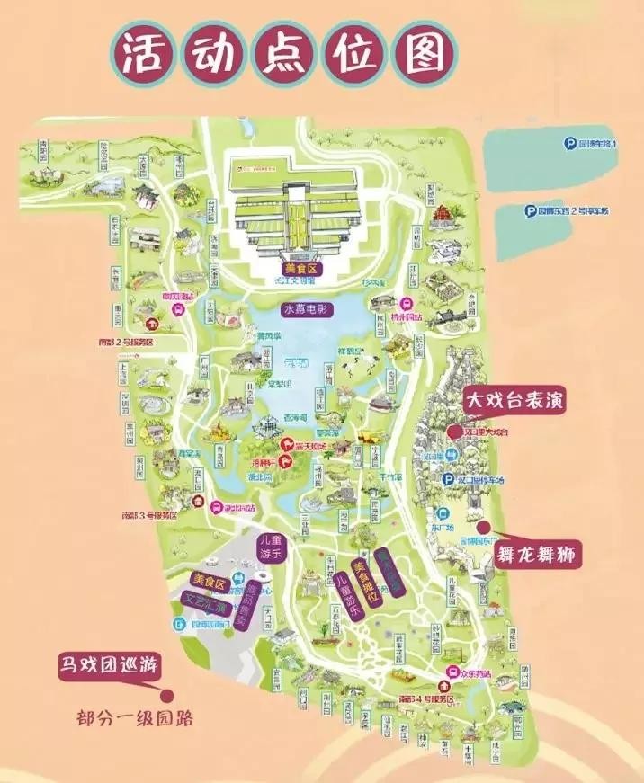 灯会期间,还将举办一系列老少皆宜的游园活动,请收好这份演出时间地图哦!