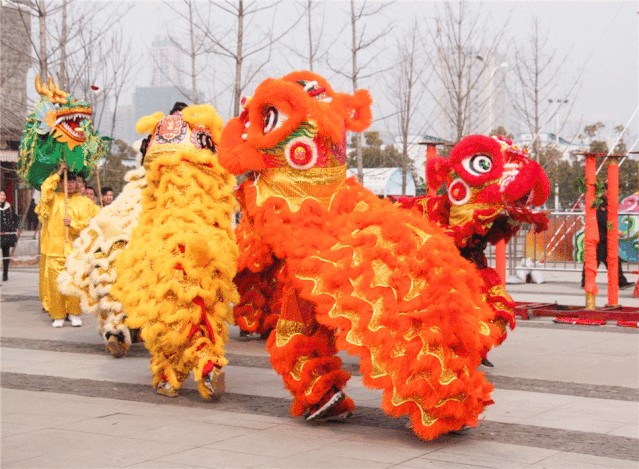 △看到园博东广场的舞龙舞狮才算武汉新年