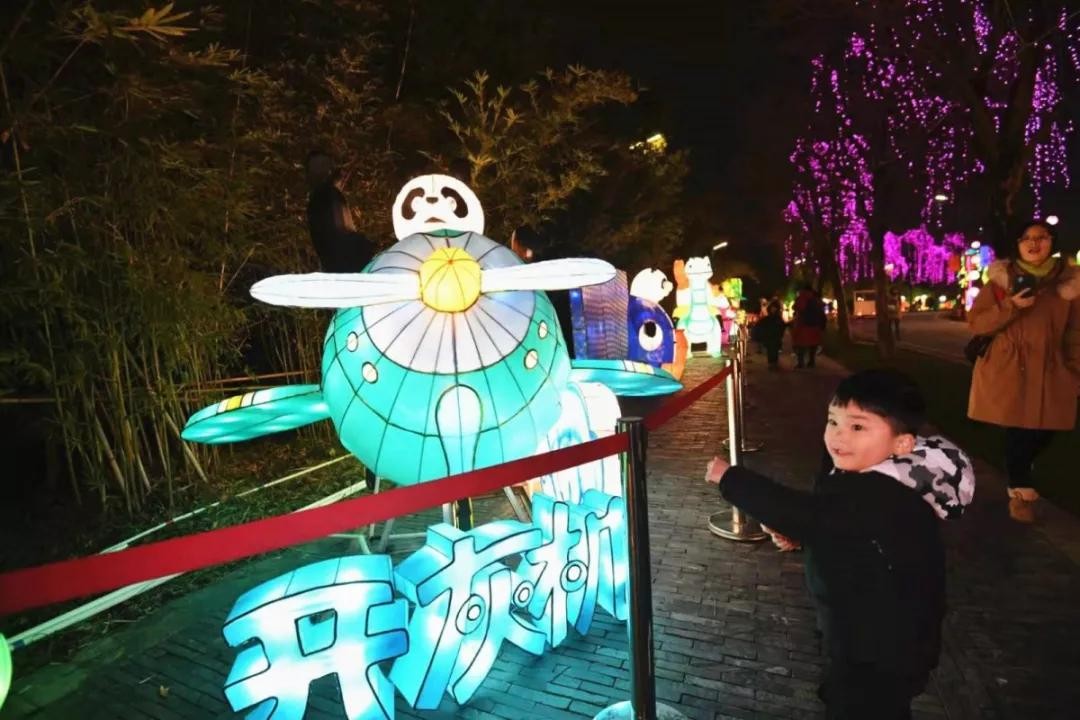 在这里,你可以看到“熊猫开飞机”“熊猫涮火锅”“熊猫打麻将”“熊猫骑自行车”等生动的场景展现,是不是超级有趣?据说灯会里面共有三百多种动物,小朋友们可以来数一数自己认识哪些呢?