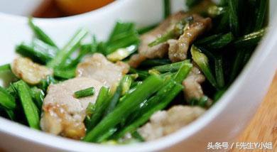 2、瘦肉剁成肉末;加入少许料酒,盐和生粉腌制10分钟;热锅冷油下肉末翻炒;马上放入南瓜藤一起大火翻炒,只要加入盐调味,淋点香油即可。