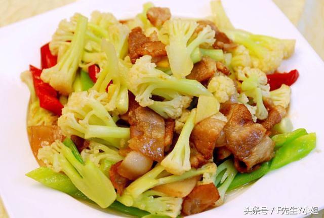 材料:五花肉、菜花、蒜苗、色拉油、食盐、鸡精、葱、蒜、花椒、干辣椒、料酒、生抽、白糖